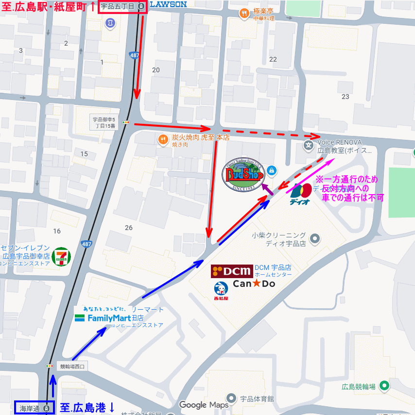 ※最寄り駅は「宇品五丁目」ですが初めての方は「海岸通」がわかりやすいです